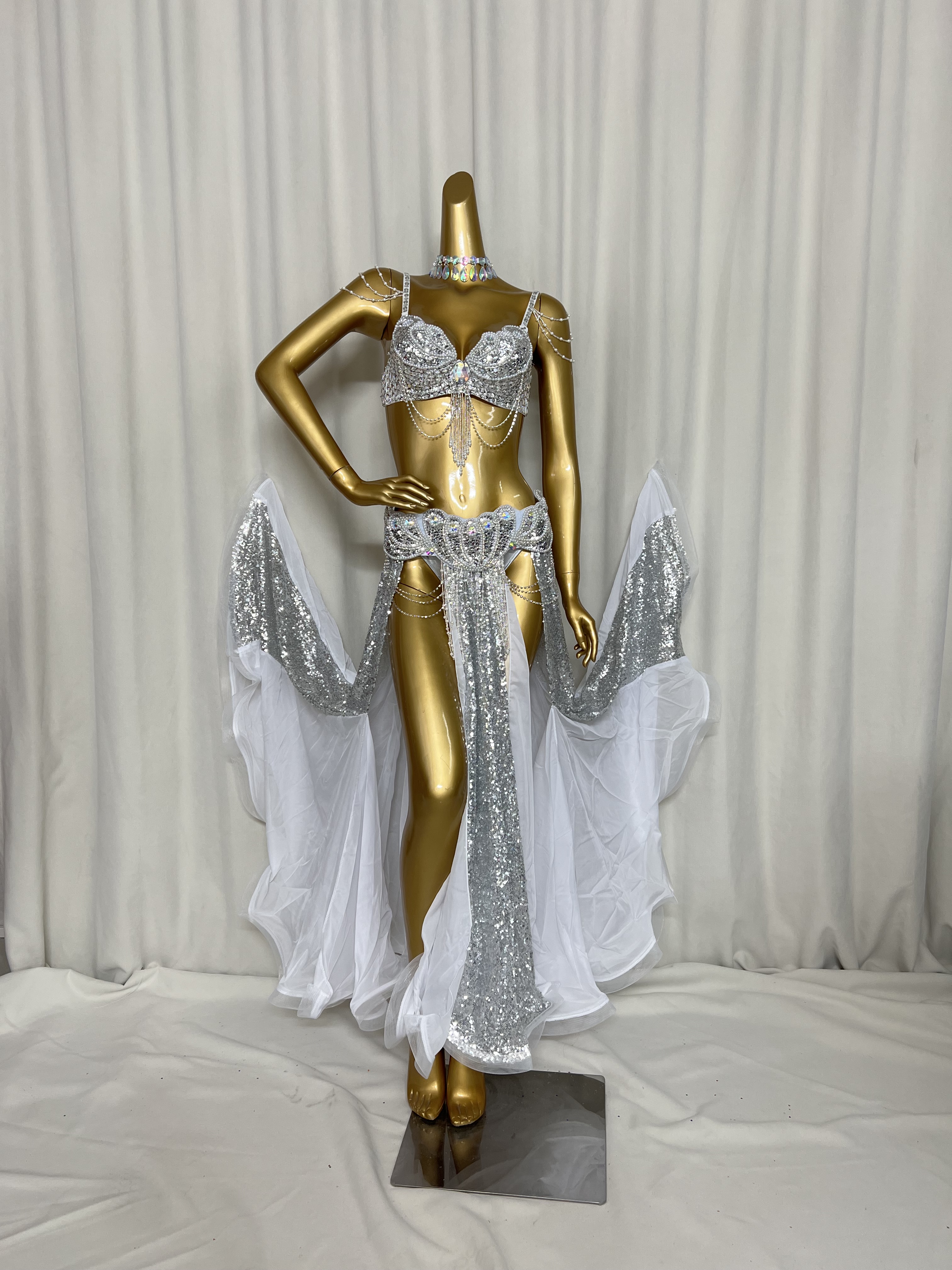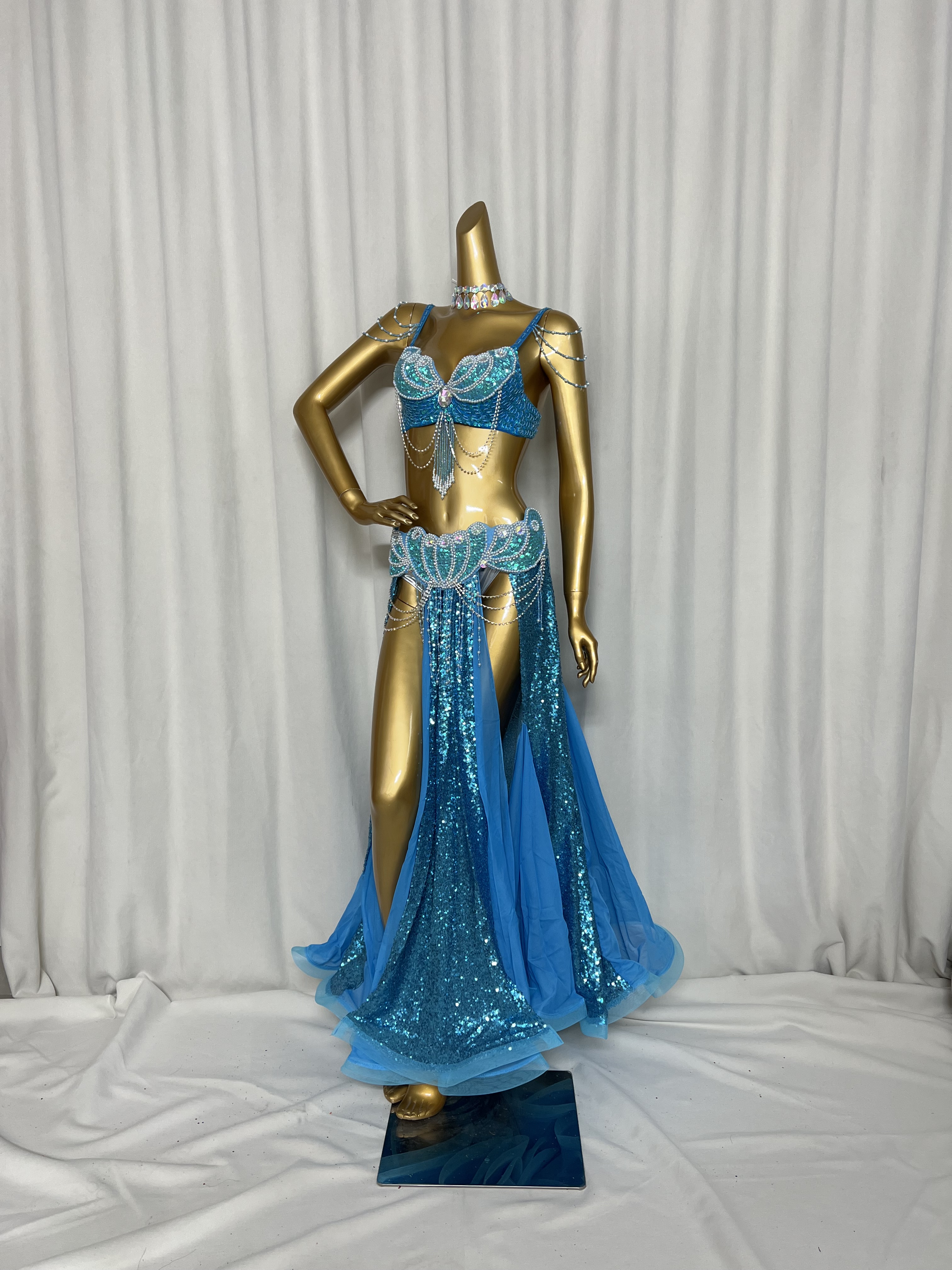 - New Arrival ! Beaded belly dance costume wear stage performance 3-piece suit