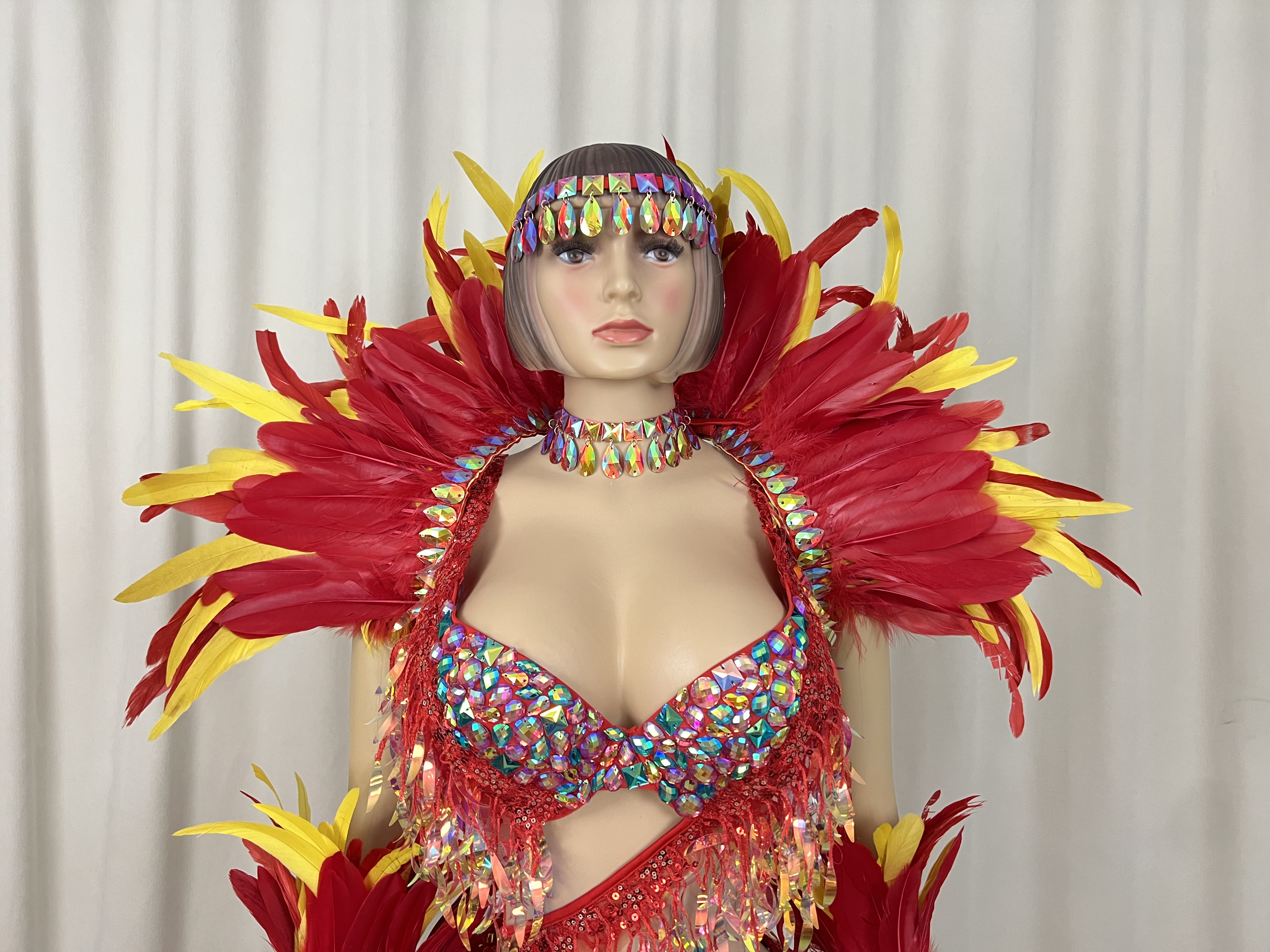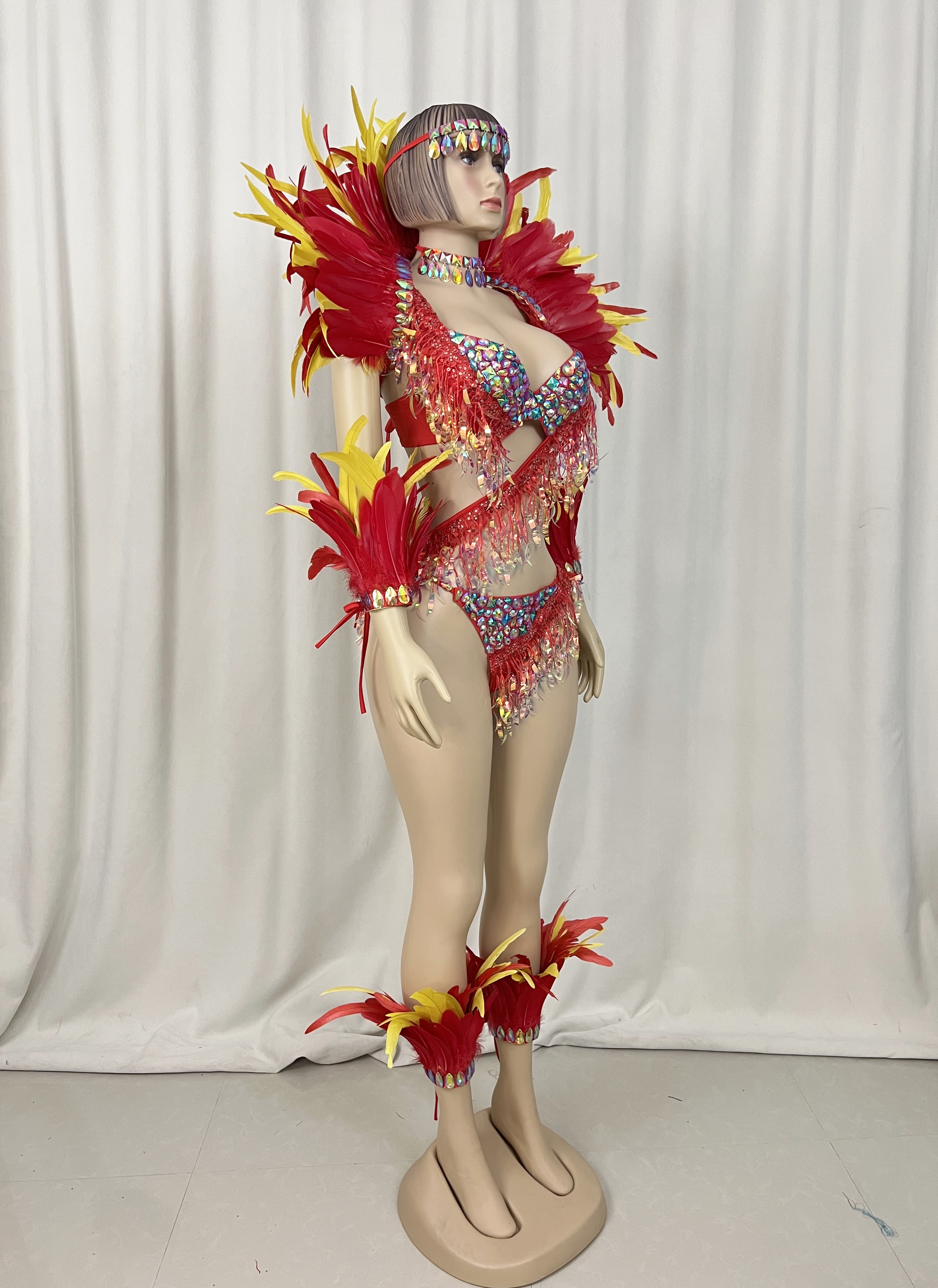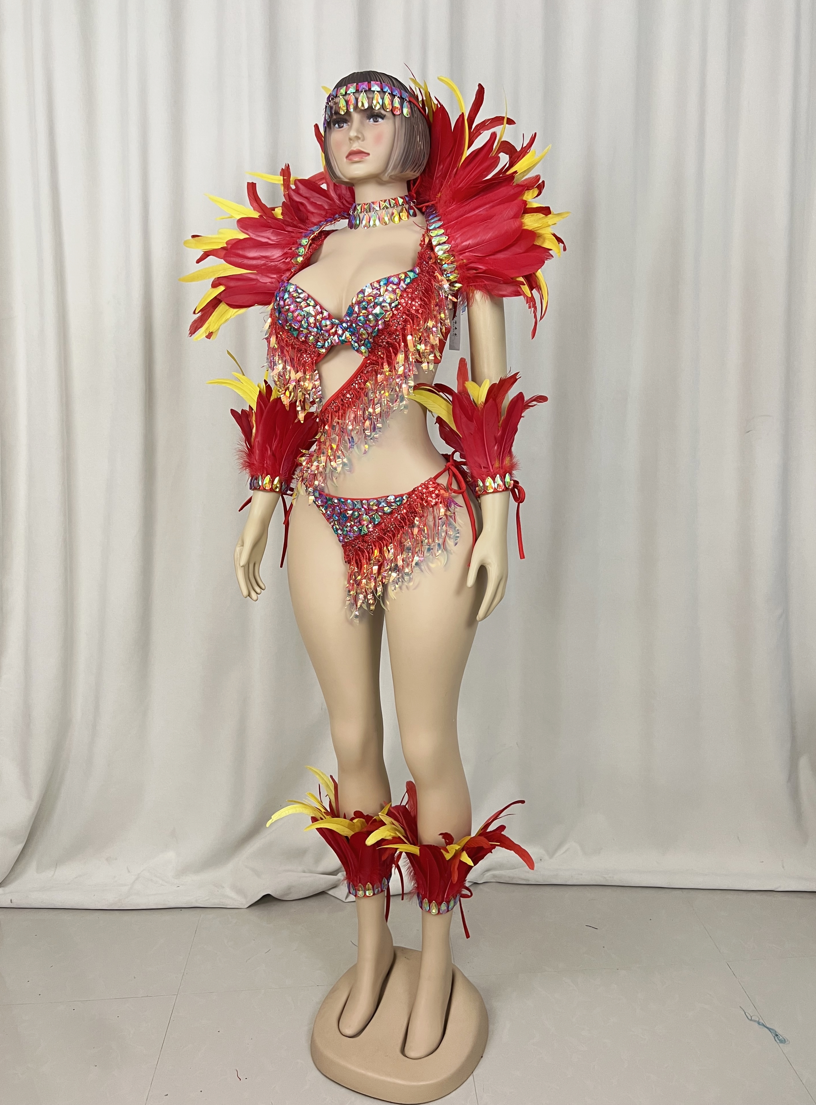 Included: Bra + Panty+Feather shawl+arm piece+leg piece+necklace