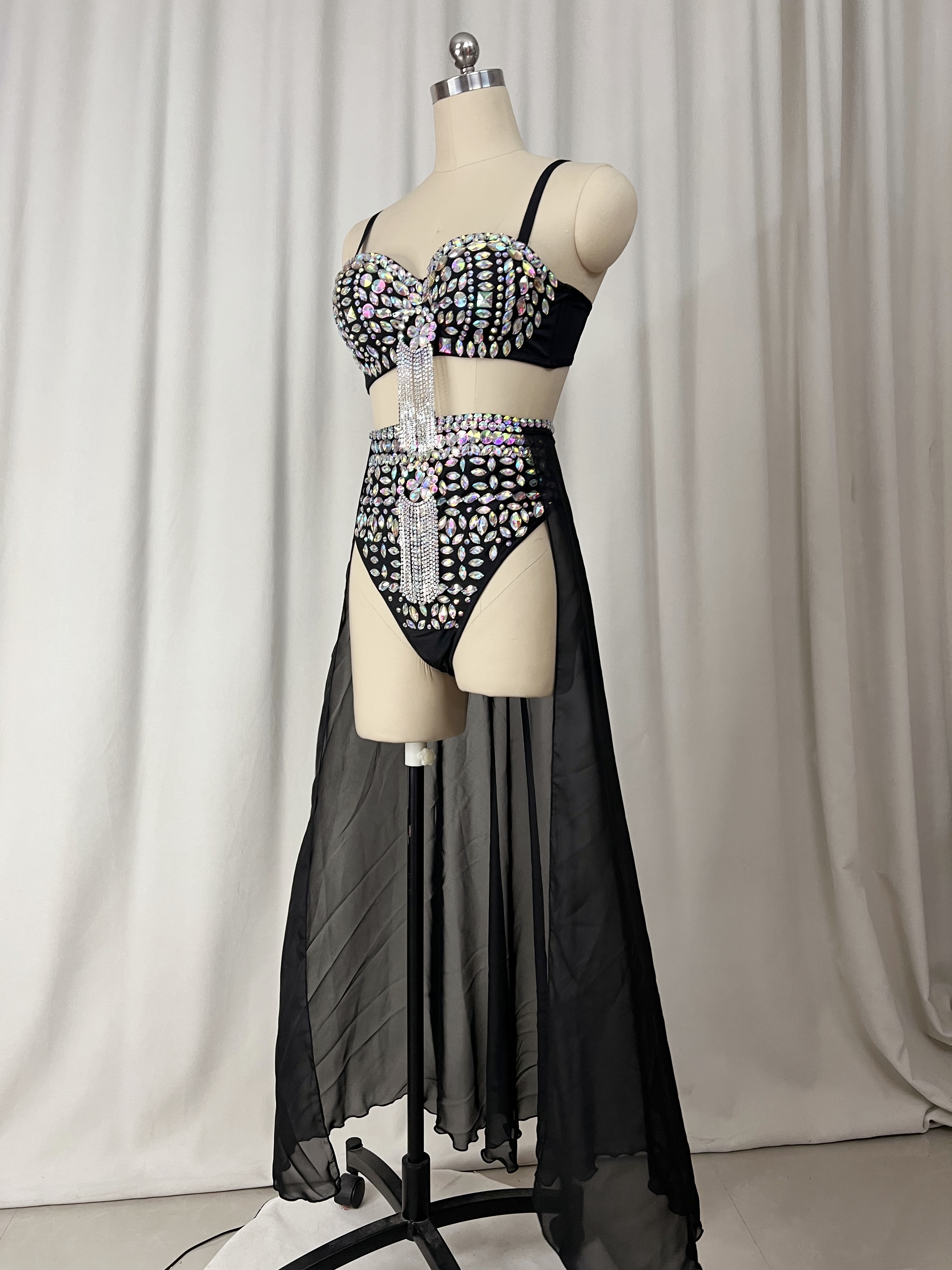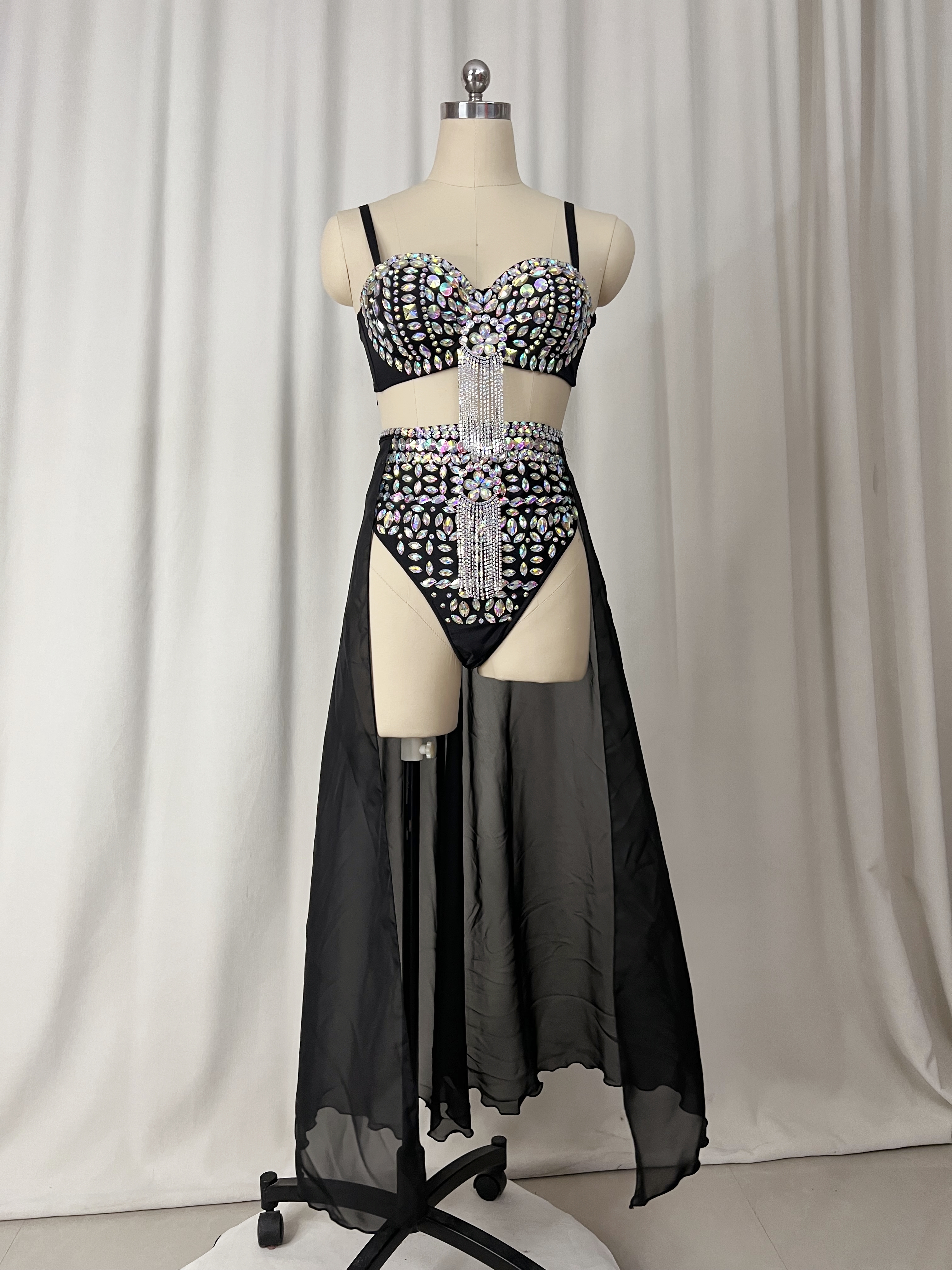 - Product Name: Samba Carnival Performance Set Handmade Rainbow stones Costumes Bra,High Waist Bottom With Skirt