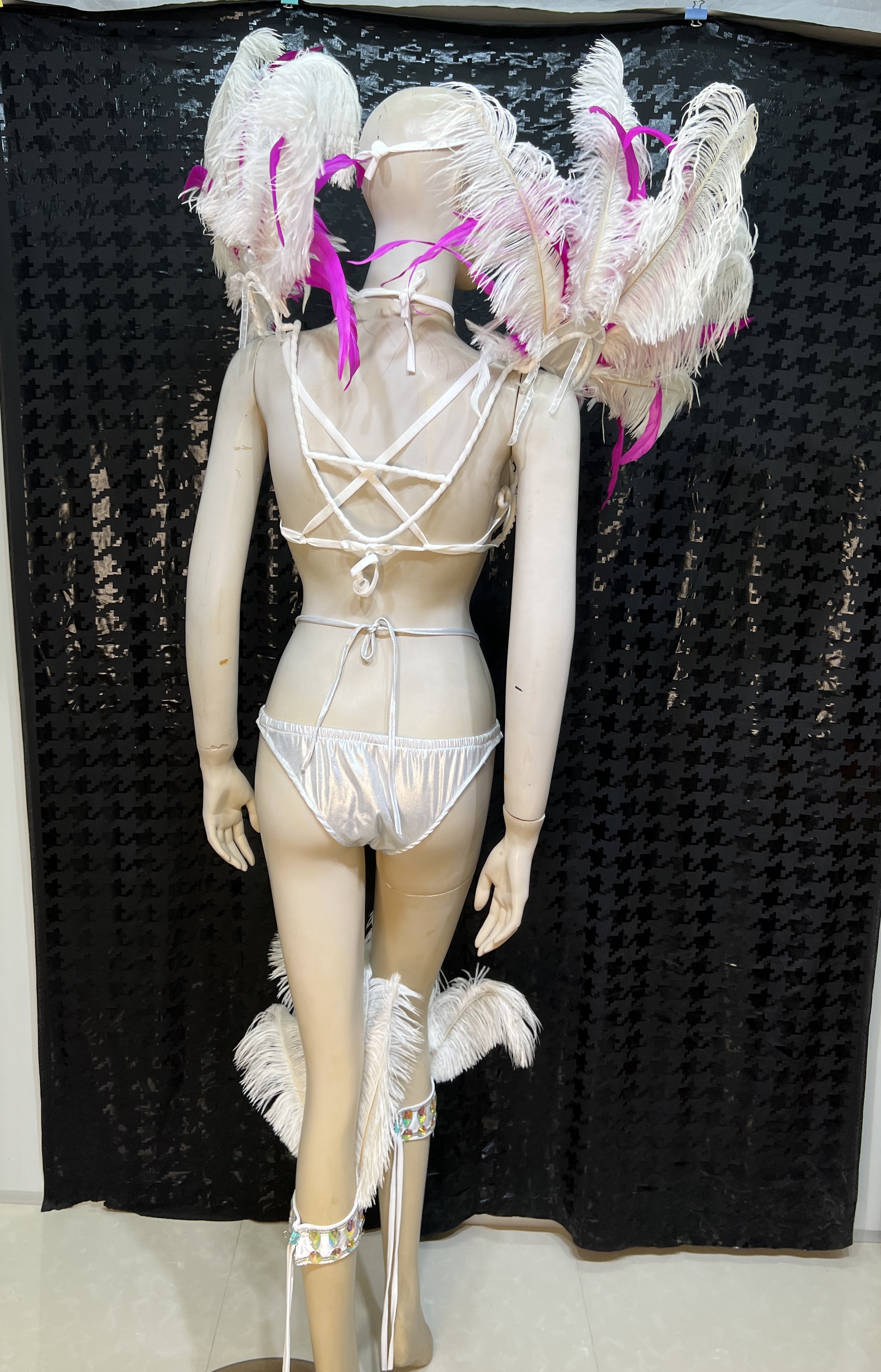 - Including: 1 set including Bra & Panty & Feather Headdress (as picture showing)